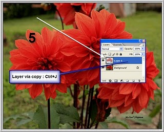 படம்.5. பிறகு தேர்வு செய்த பகுதியை மட்டும் புதிய லேயரில் காப்பி செய்யவேண்டும். இதற்கு சார்ட் கட் கீயில் கண்ட்ரோல் + J கீக்களை அழுத்த புதிய லேயரில் தேர்வுப்பகுதி மட்டும் காப்பியாகி இருக்கும்.
